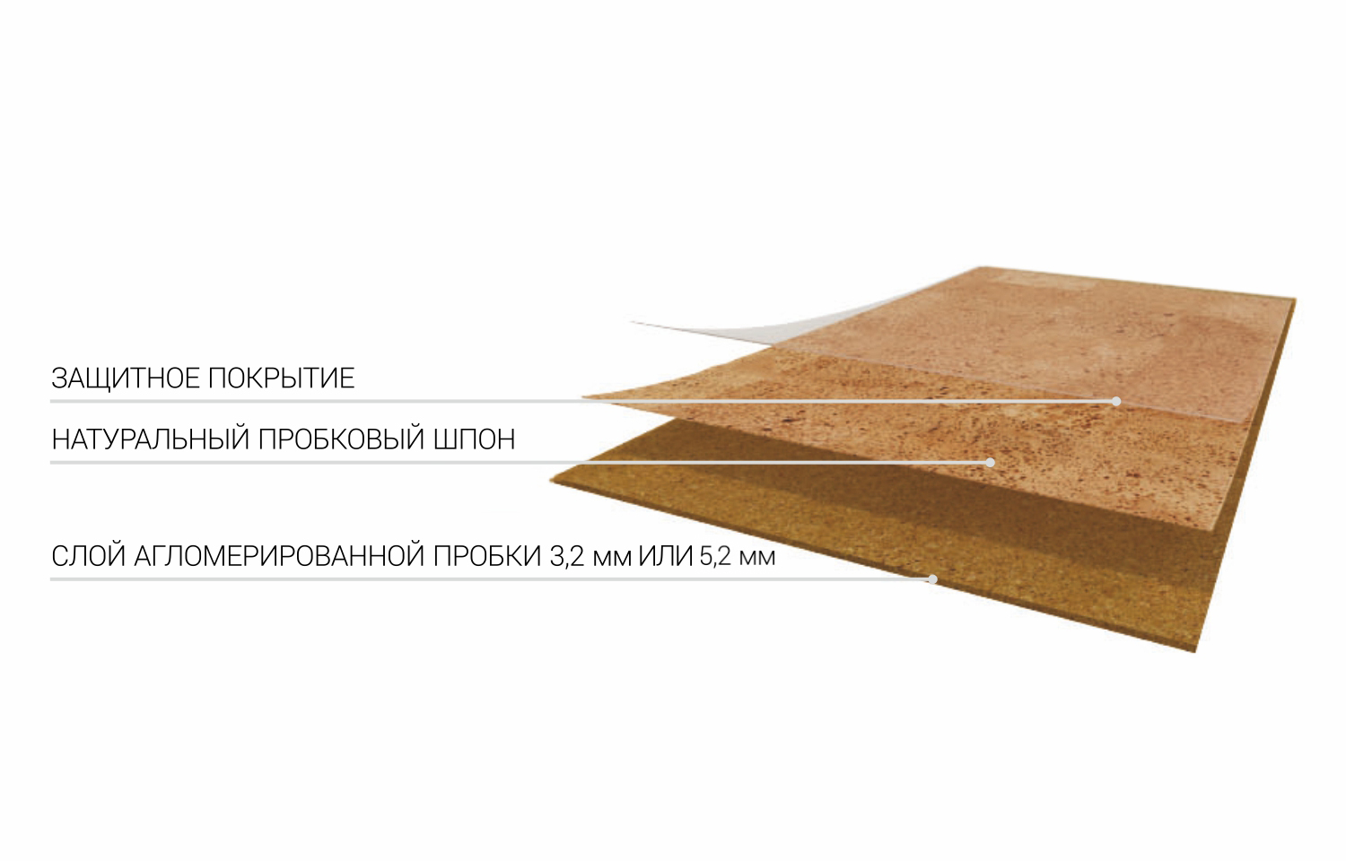 Срок службы пробки не ограничен, поэтому подходите к выбору грамотно. Готовый к эксплуатации пробковый пол состоит из: качественно подготовленного основания (стяжки или наливного пола); слоя клея, нанесенного как на основание, так и на пробковую плиту; пробковой плиты толщиной 4–6 мм в различных размерах, цветах и текстурах; двух-трех слоев лака для обеспечения прочность верхнего покрытия. Пол должен быть ровным без перепадов, иначе после укладки пробковые панели полностью повторят рельеф основания, а при эксплуатации выступающие кромки пробковых плит раскрошатся.